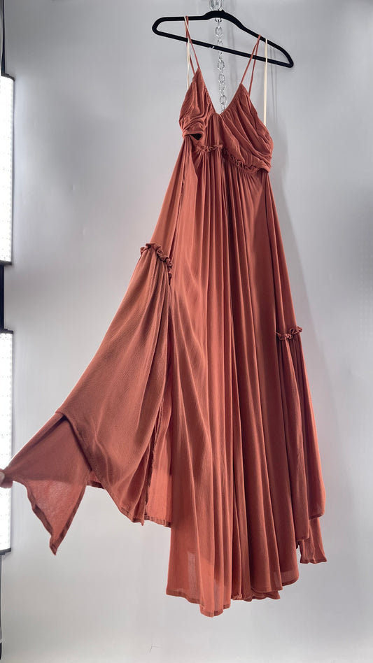 Free People Terracotta/Apricot Toned Voluminous Gown with Open Cut Out Sides and Low, Open Back (Large)