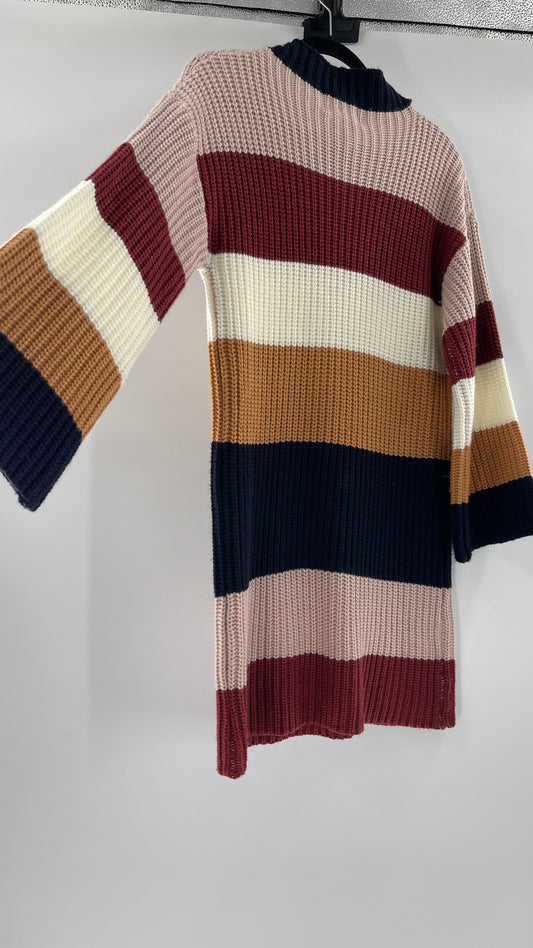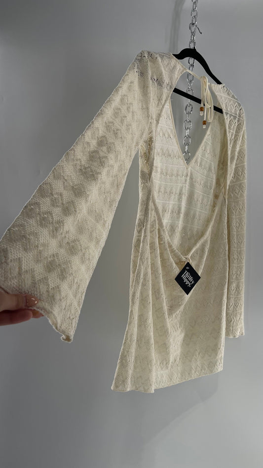 Free People Gauze Lace Open Back Mini Dress with Bell Sleeves (S)
