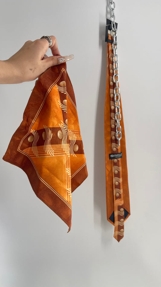 Deadstock Vintage Men’s Fratello 1970s Orange Handkerchief and Tie Set