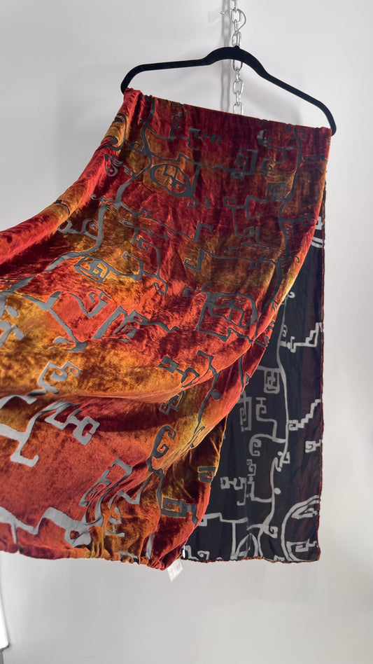 Vintage Orange/Red Abstract Burn Out Velour Scarf
