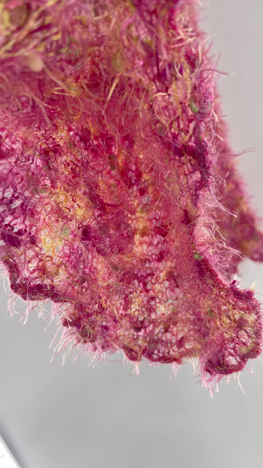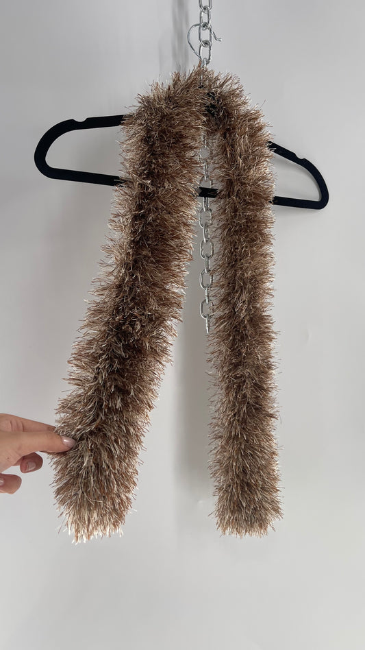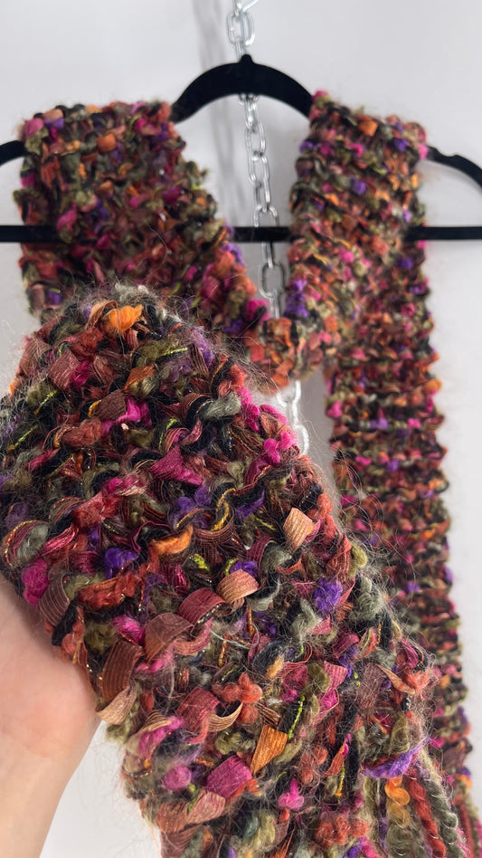 Vintage Jewel Tone Fuzzy Knot Scarf with Tinsel Ribbon