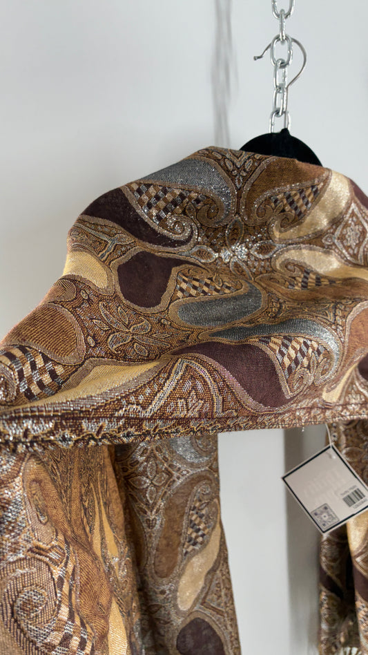 Vintage Paisley Metallic Knit Bronze and Silver Scarf