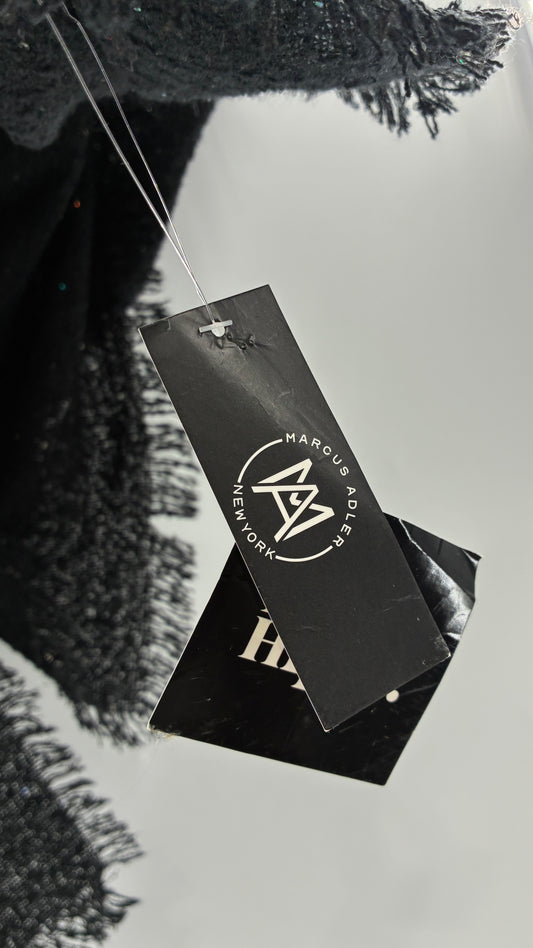 Vintage Marcus Adler Black Fringed Scarf with Iridescent Sequins and Tags