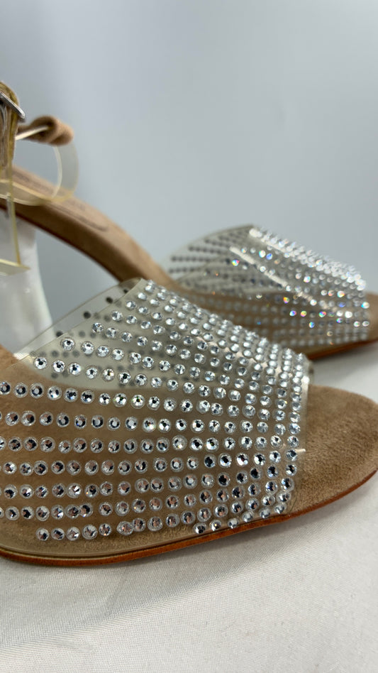 JEFFREY CAMPBELL Lucite Heel Suede Sole, Clear Strap Rhinestone Heel (8)