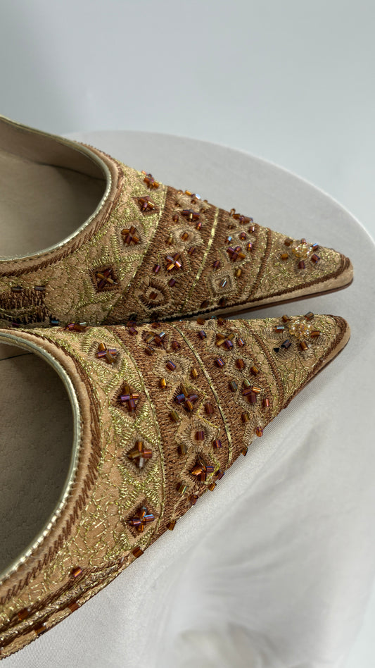 Vintage 1990s NINE WEST Gold Beaded Pointed Toe Heels (7)