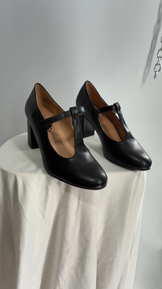 Deadstock Vintage DREAM PAIRS Black Leather Mary Jane Style T Strap Heel (6)