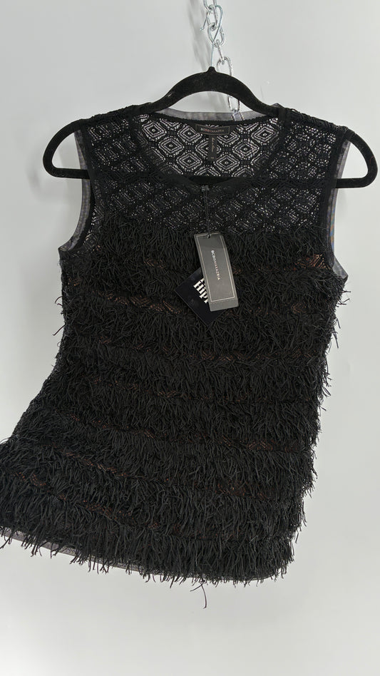 Deadstock Vintage BCBG MAXAZRIA Auden Black Fringe And Lace Top (XS)