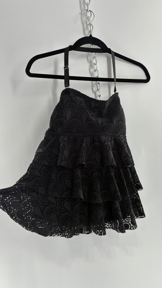 Vintage ISLAND ESCAPE Black Ruffled Heavy Lace Sleeveless with Built in Bra (10)