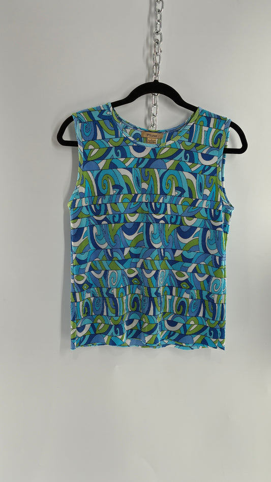 Vintage PLISSÉ Abstract Blue and Green Crimped Camisole (Large)