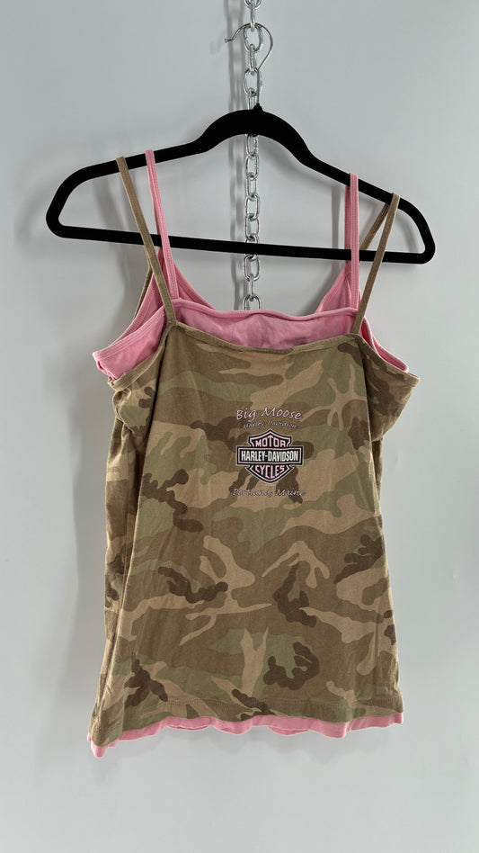 Vintage Harley Davidson Camo Tank with Built in Pink Sports Bra (Large)