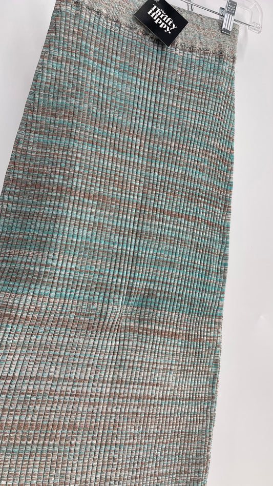 Free People Teal and Grey Heavy Knit Ribbed Long Skirt (Small)