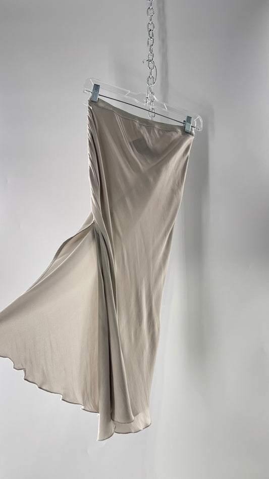 Free People Gold/Tan Silky Maxi Slip Skirt with Wide Waist Band (2)