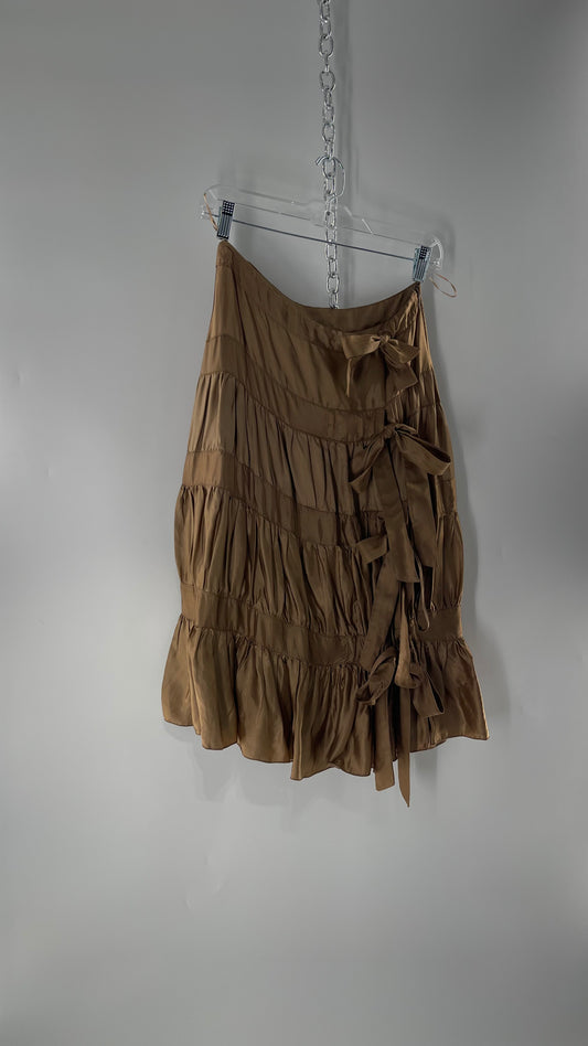 Ysatis Greece Bronze Metallic Fabric Skirt with Dainty Feminine Bow Detailing on Side (1)