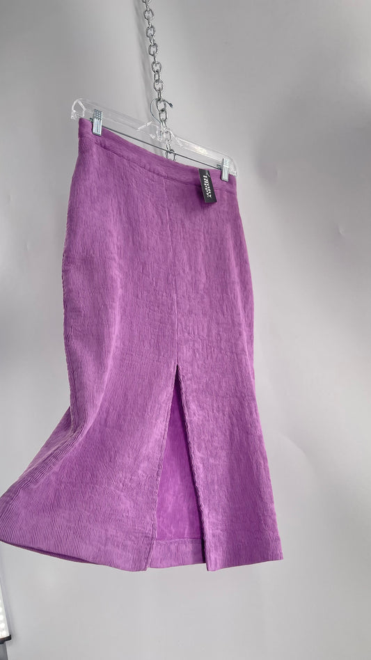Endless Rose Anthropologie Lavender Crimped/Textured Midi Skirt (Medium)