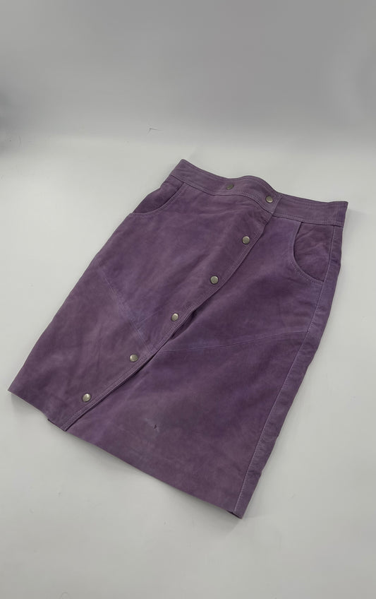 Free People Understated Purple Leather Knee Length Skirt (4)