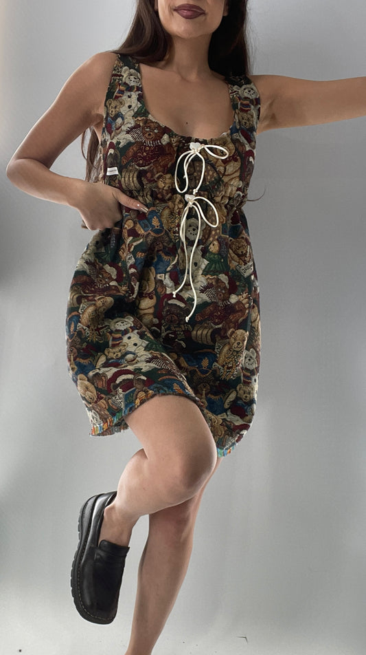 Christmas Custom Teddy Bear Tapestry Babydoll Dress with Bow Back Detail and Adjustable Neckline/Underbust (XS-L)