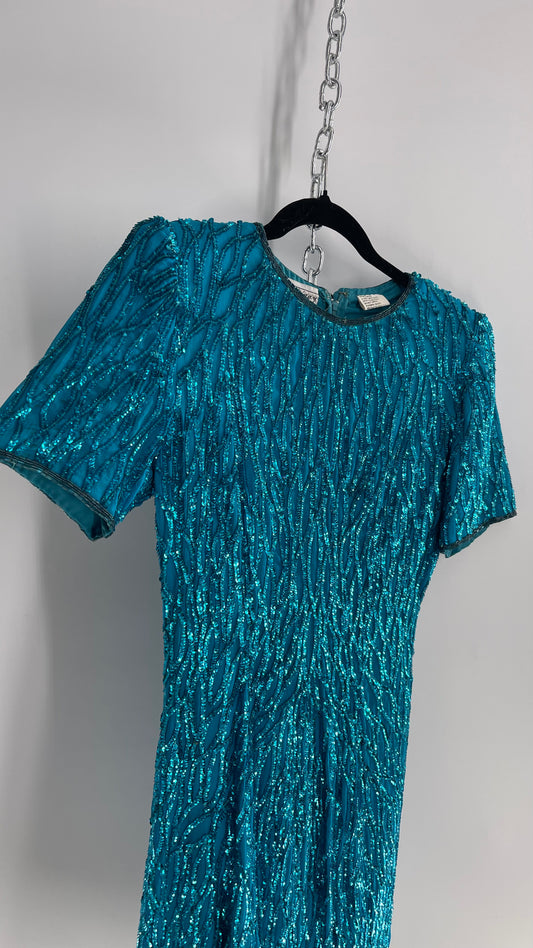 Vintage Sténay 100% Silk Bright Blue Sequin Mini Dress (4)