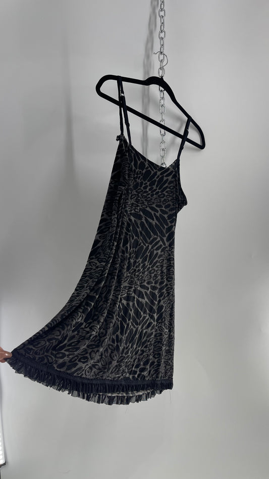 Vintage Black/Grey Leopard Mini Dress with Ruffle Bust (Large)