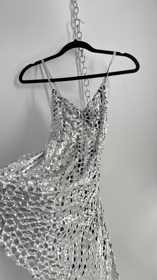 Vintage Weismann Silver Grated Tank with Asymmetric Hem and Built in Shorts (Medium)