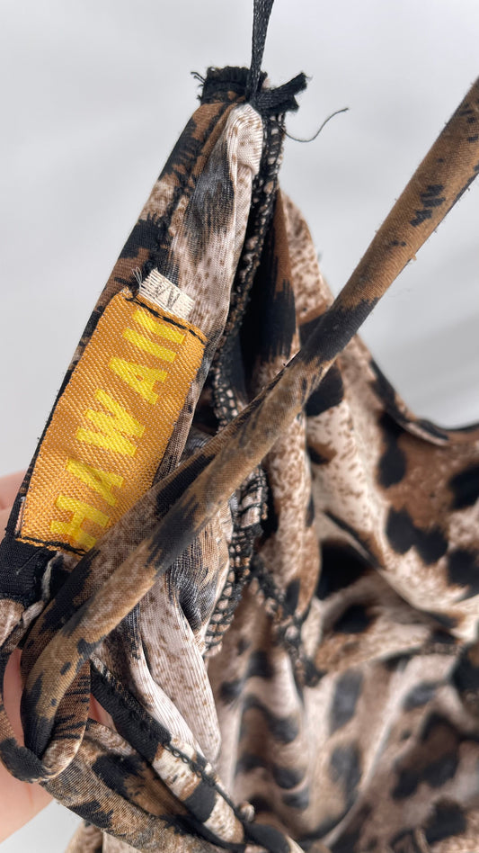 Vintage 1990s Hawaii Cheetah Print Bubble Hem Mini Dress with Rhinestone Broche (Medium)