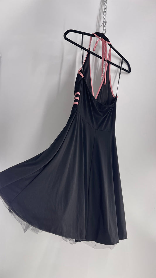 Vintage 1990s XOXO Black Tulle Underskirt Pink Ribbon Striped Waistline (Small)
