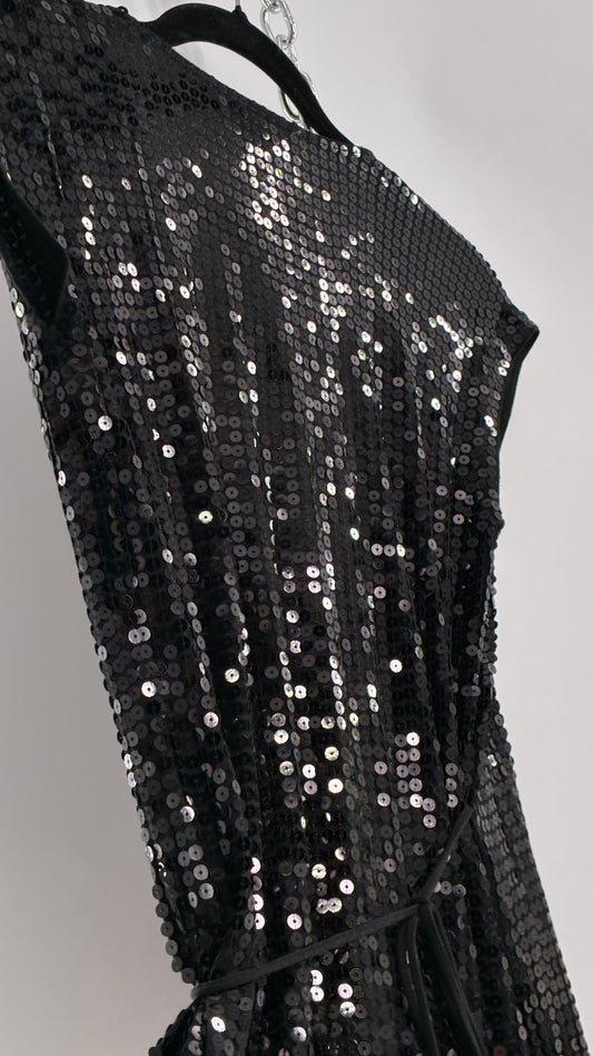 Vintage MICHAEL KORS Black Sequin Wrap Dress (Small)