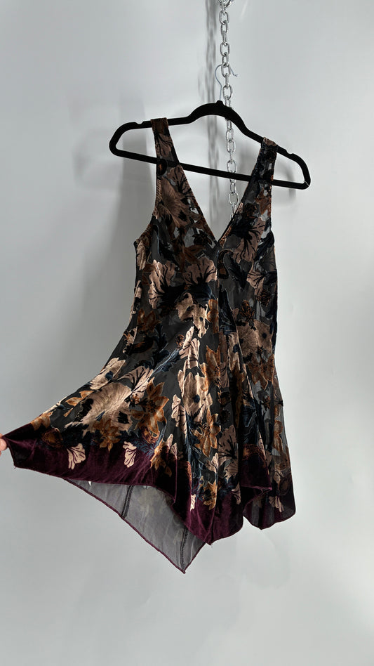 Free People Burn Out Velvet Mini Dress with Handkerchief Hem (XS)