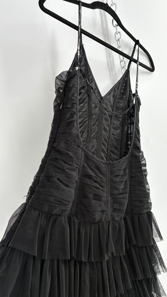 Vintage Black Ruffled Tulle Mini Dress with Low Open Back (8)
