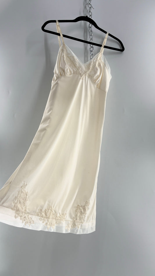 Vintage Van Raalte Suavette Nylon Slip Dress with Pleated, Embroidered Bust (S/34)