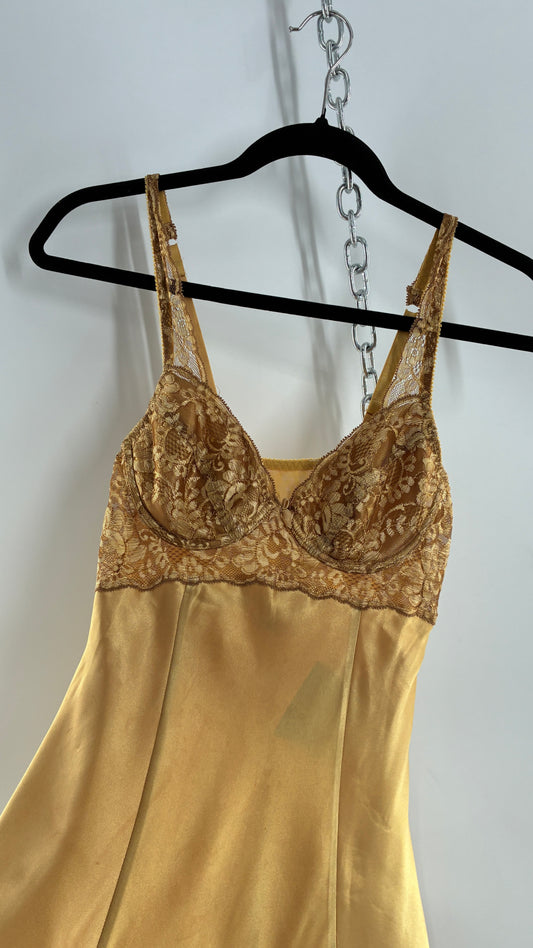 Vintage Victoria’s Secret Gold Mini Dress with Lace Underwire Bustier (XS)