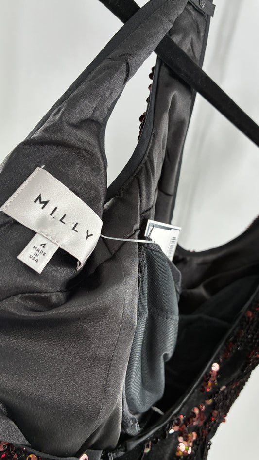 MILLY Cora Velvet, Black and Rose Gold Sequin Mini Dress with Built in Corset (4)