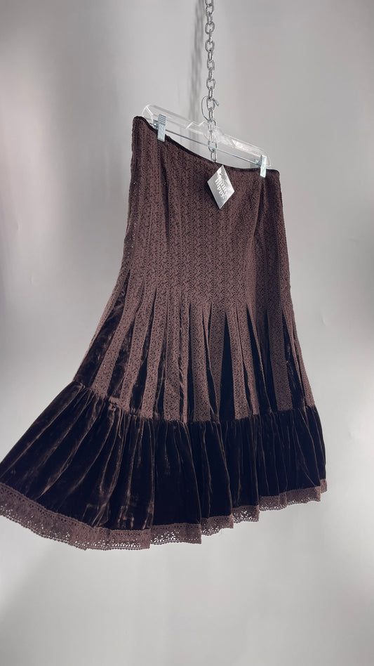 VINTAGE 1990s CC Couture Brown Velvet Crochet Lace Midi Skirt (Large)Regular price $38.00Regular priceUnit price per$69.00Sale price $38.00Sold out