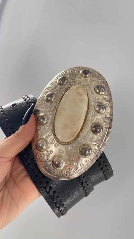 Vintage Black Leather Belt with Silver Metal Buckle with ‘Stone’ Detail (M/L)Regular price $34.00Regular priceUnit price per$84.00Sale price $34.00Sold out