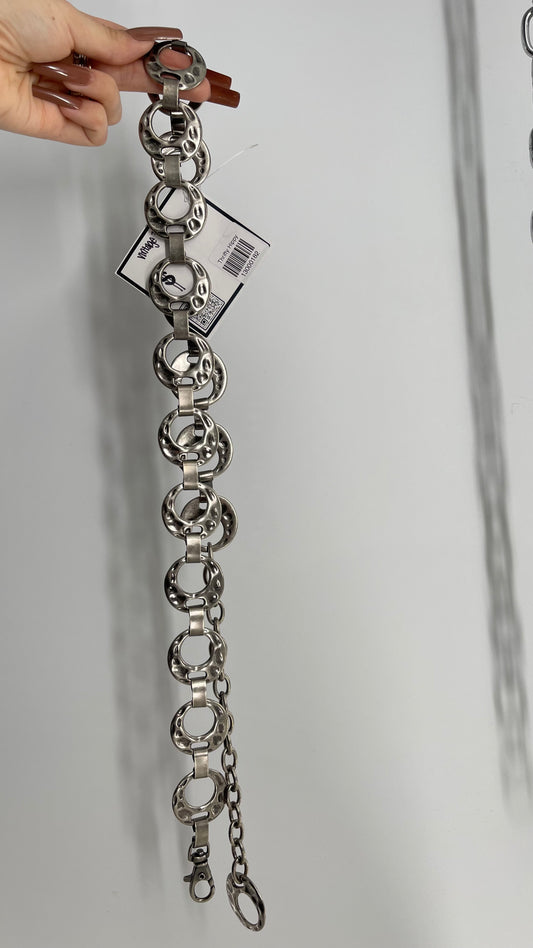 Vintage Dark Silver Hammered Metal Hoop Chainlink Belt (Medium)