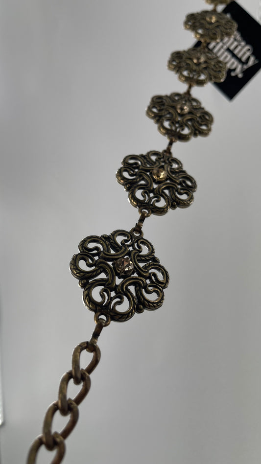 Vintage Gold/Bronze Metal Chain Belt with Rhinestone Embellishments (S/M)