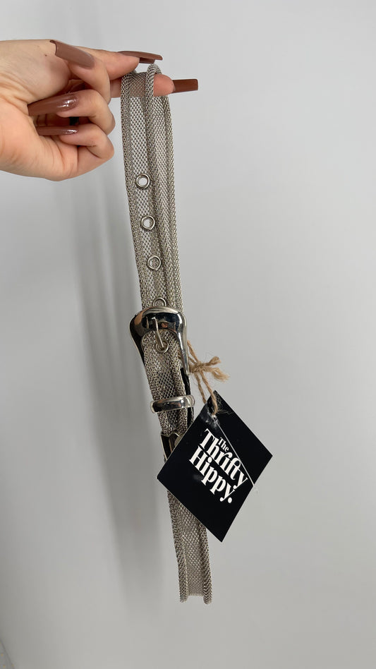 Vintage Silver Chain Link Mesh Skinny Belt (XS/S)