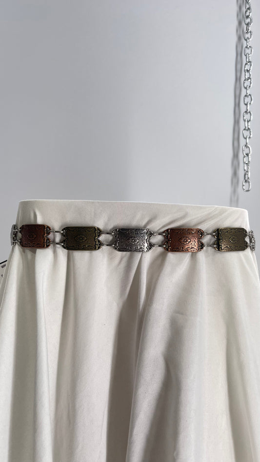 Vintage Mixed Metal Embossed Chain Belt (Medium)
