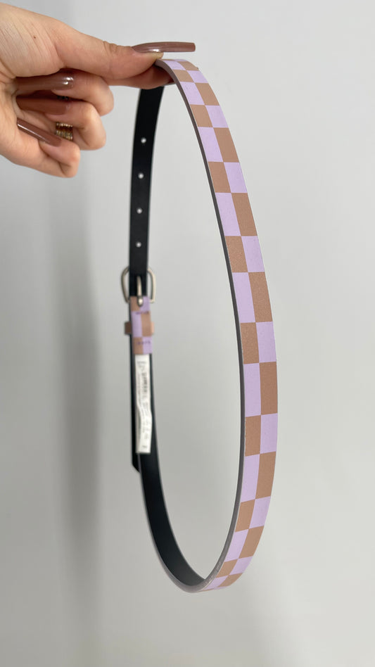 Urban Outfitters Checkered Skinny Belt Purple Brown (Small)