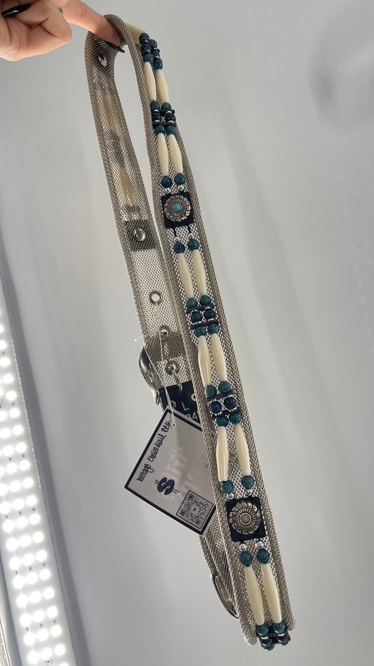 Vintage Silver Chain Mail Western Beading and Buckle Belt (Large)