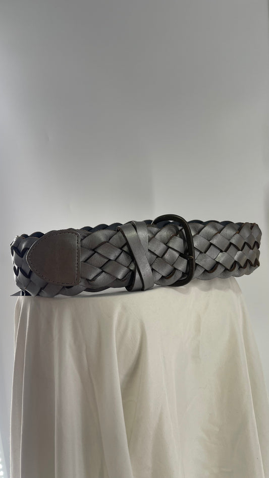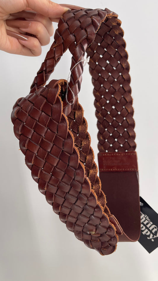 Brown Genuine Leather Woven Braided Wide Belt (Small)