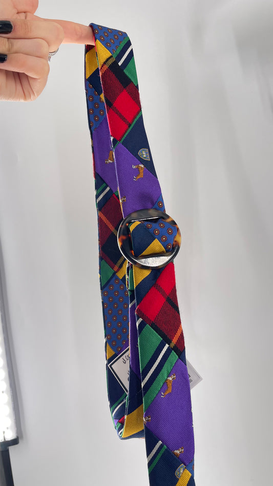 J. Crew Patchwork Tie Belt with Tortoise Buckle (S/M)