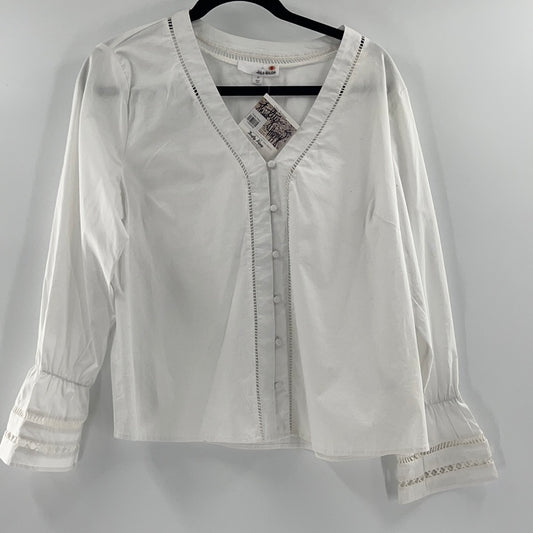 For Love & Lemons Ivory Balloon Sleeve Ruched Waist Blouse (XS)
