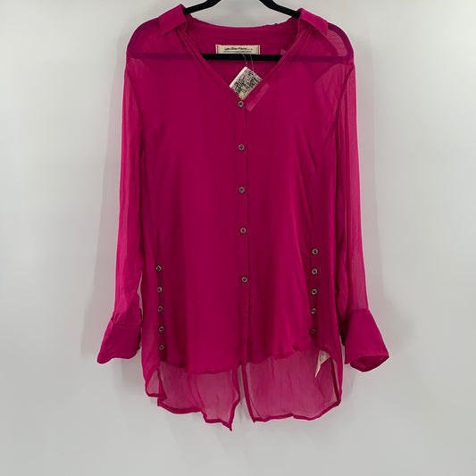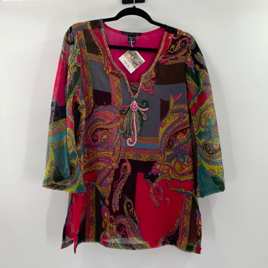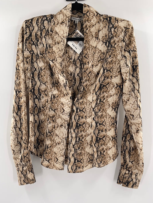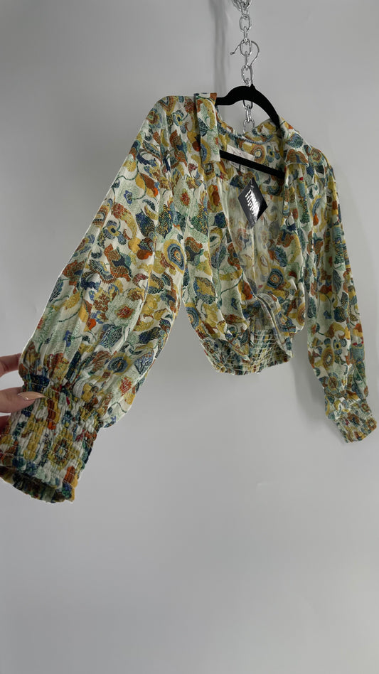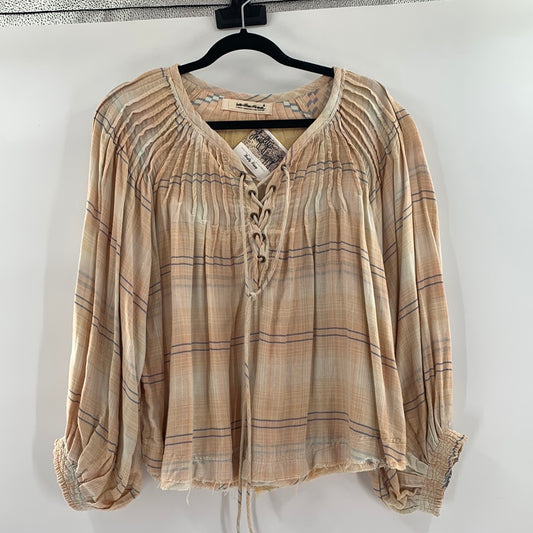 Free People All Over Mixed Warm Toned Satin Blouse with Pleated/Draping Neckline and Collar, Tags Attached (Small)