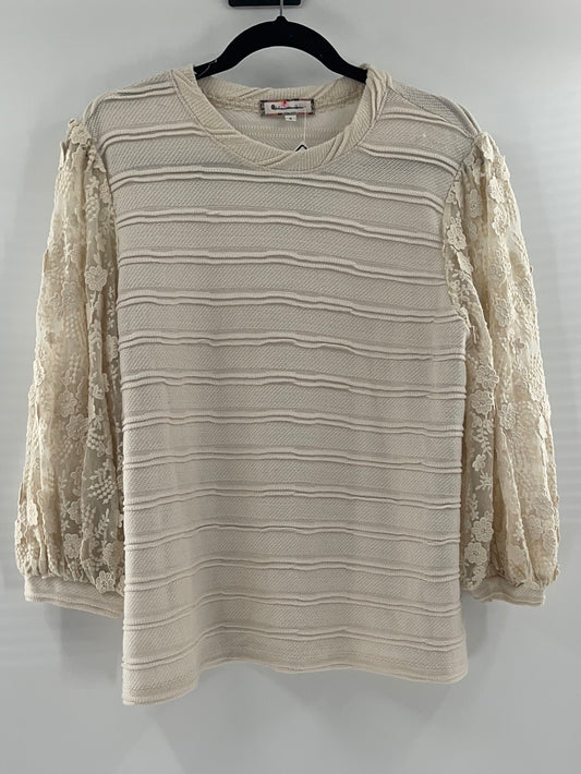 Eri + Ali Cream Knit Top with Dramatic Sleeve (S)