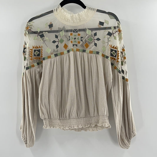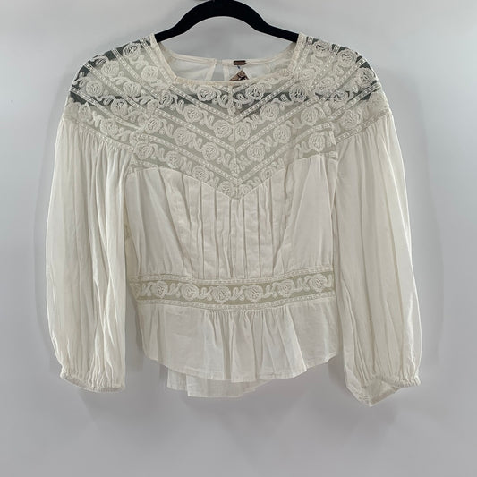 KEEPSAKE Anthropologie White Puff, Balloon Sleeve Blouse with Neck Tie Detail (XS)
