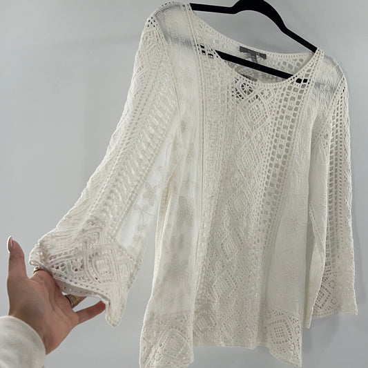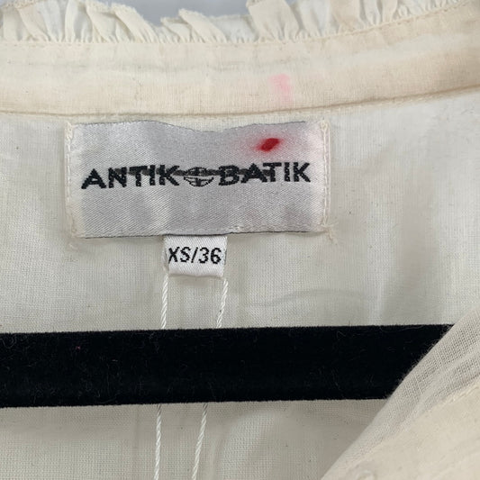 Blue Tassel White Cotton Crochet Blouse (XS)