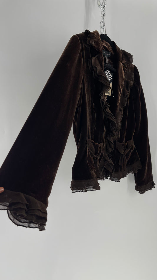 Deadstock Vintage Brown Velvet Anne Carson Blazer with Delicate Crepe Ruffled Hem and Bow Pockets (Medium)