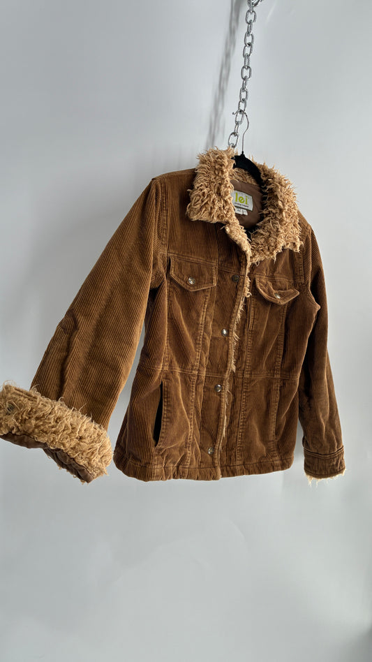 Vintage 1990s LEI Corduroy Jacket with Shearling Cuffs and Collar (Large)