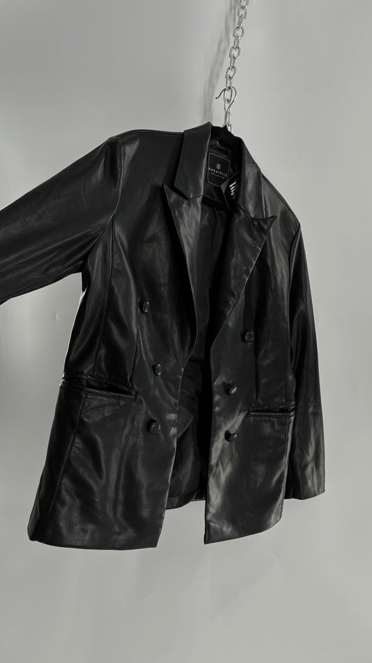 Bagatelle Black Vegan Leather Blazer Suit Jacket (Large)