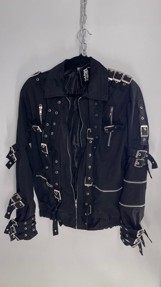 Vintage Black Steam Punk Metal Buckle/Zipper Jacket (small)
